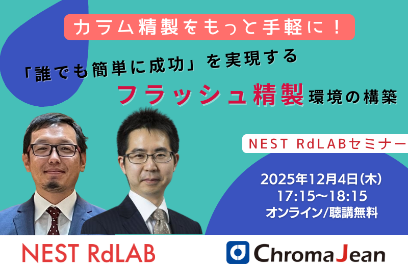 【セミナー案内】NEST RdLABセミナー『カラム精製をもっと手軽に!「誰でも簡単に成功」を実現するフラッシュ精製環境の構築』を12月4日に開催します